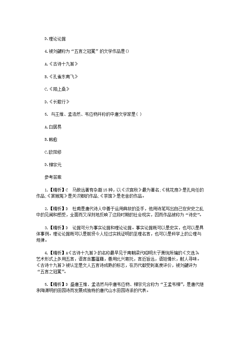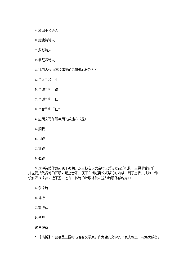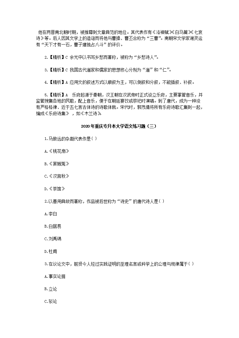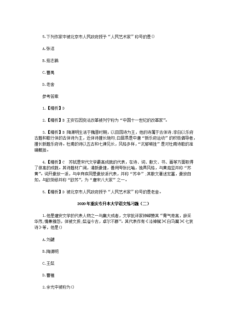 【文档名称】 2020年重庆专升本大学语文练习题三套(Word版).doc