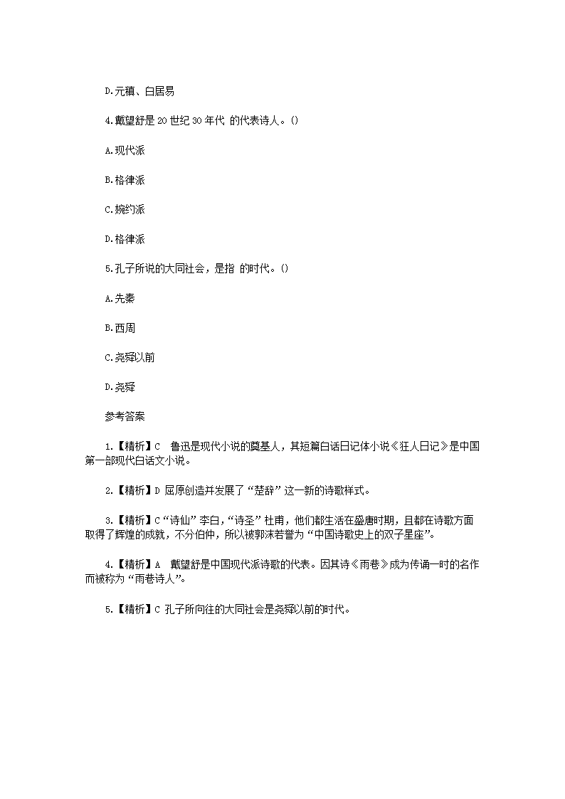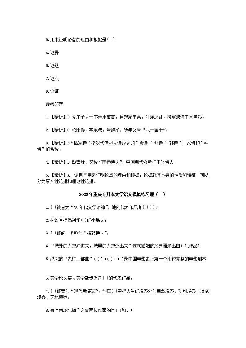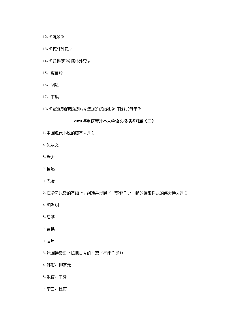 【文档名称】 2020年重庆专升本大学语文模拟练习题三套(Word版).doc