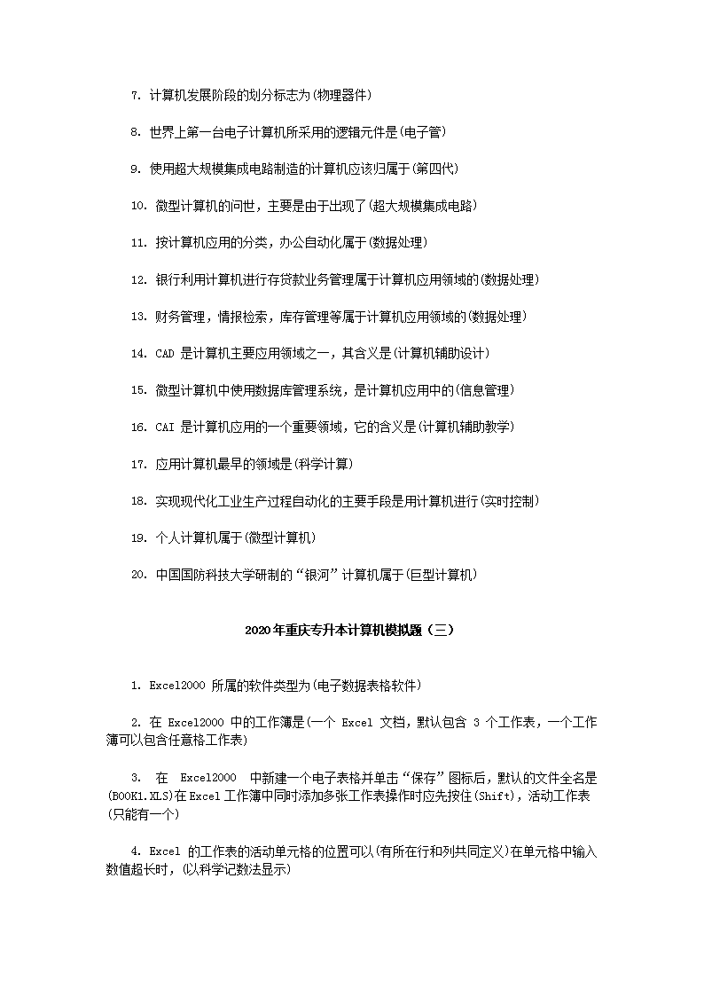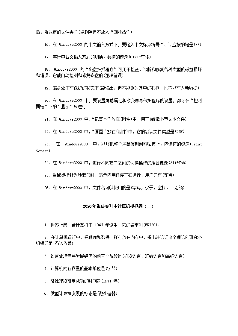 【文档名称】 2020年重庆专升本计算机模拟题三套(Word版).doc