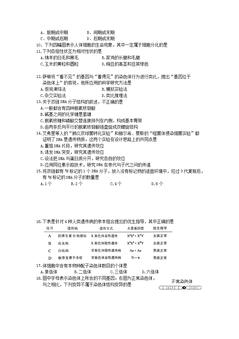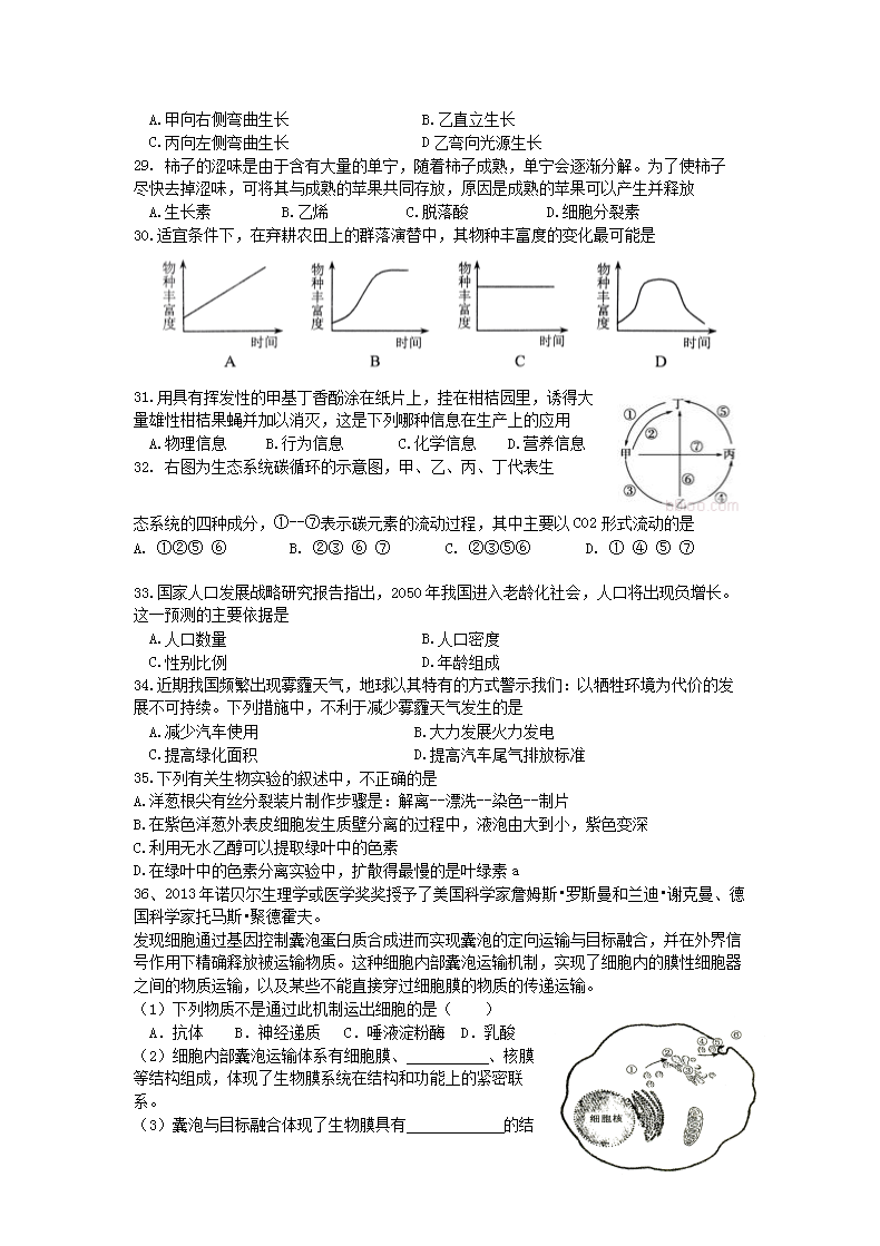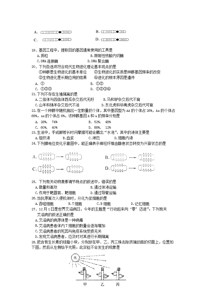 【文档名称】 2014年天津普通高中会考生物真题及答案(Word版).doc