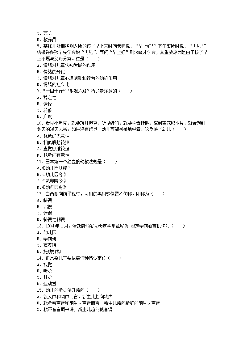 【文档预览】 无忧考网整理发布2021吉林教师招聘考试幼儿教育理论综合知识练习题及答案三套(Word版),前五页预览如下:
