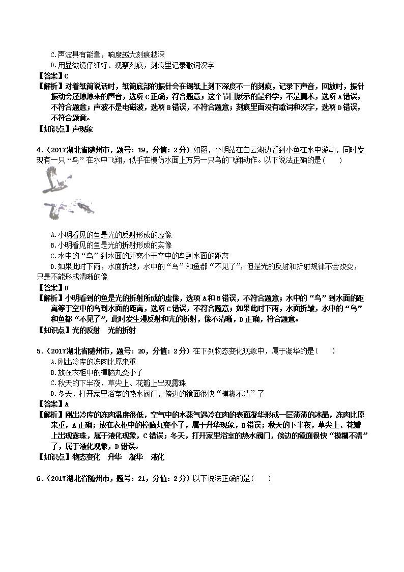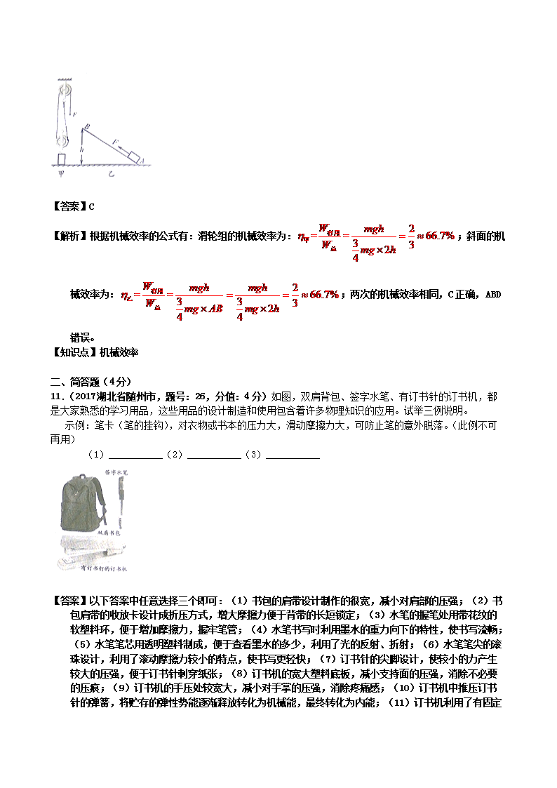 【文档预览】 无忧考网整理发布2017年湖北省随州市中考物理真题及答案(Word版),前五页预览如下: