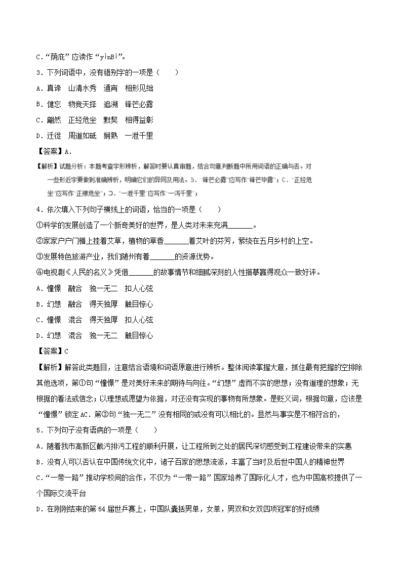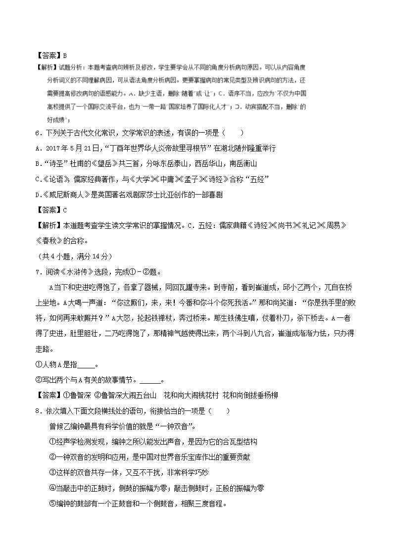 【文档名称】 2017年湖北省随州市中考语文真题及答案(Word版).doc