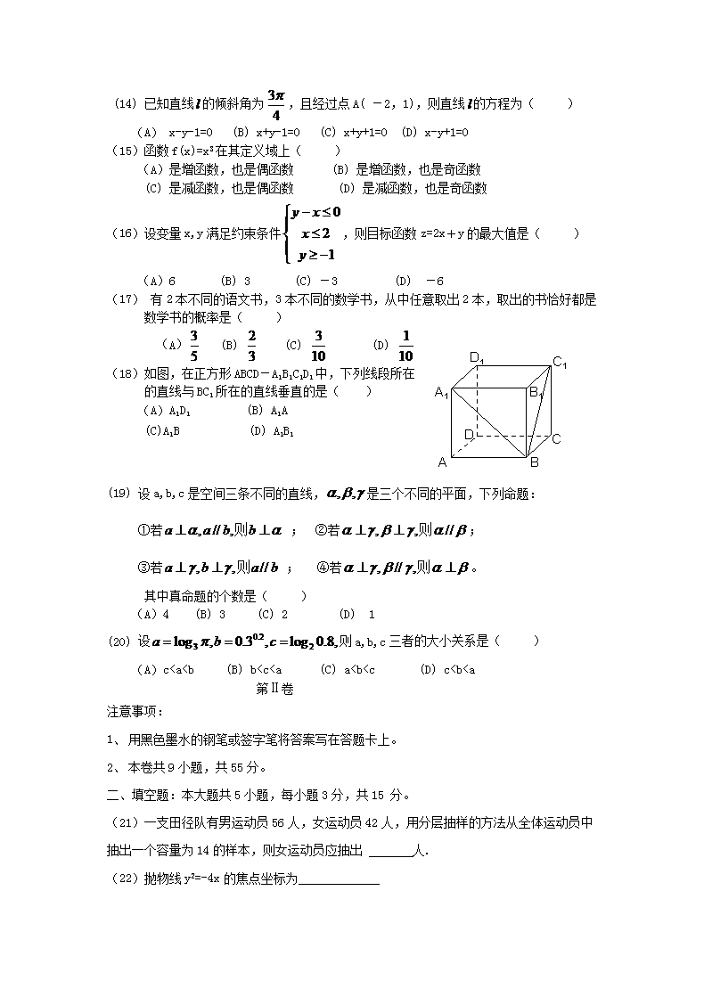 【文档预览】 无忧考网整理发布2008年天津普通高中会考数学真题及答案(Word版),前五页预览如下: