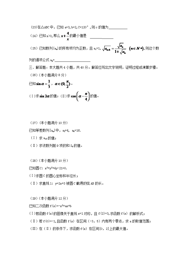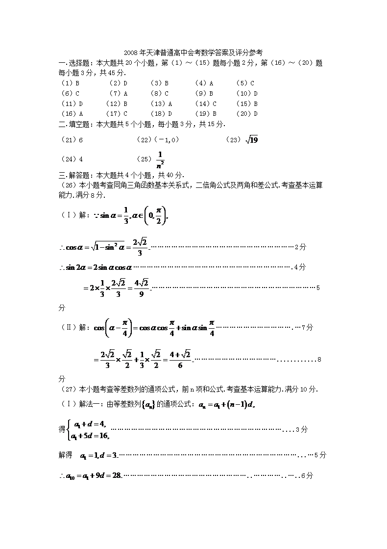 【文档名称】 2008年天津普通高中会考数学真题及答案(Word版).doc