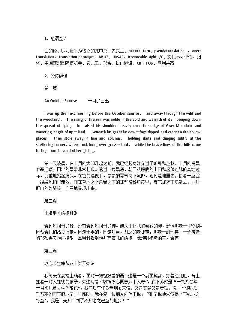 【文档名称】 2017年湖北武汉大学翻译专业考研真题(Word版).doc