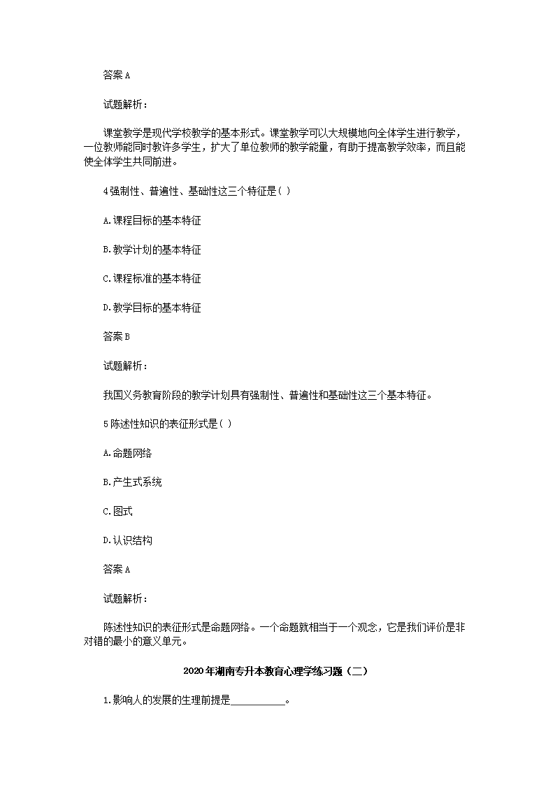 【文档名称】 2020年湖南专升本教育心理学练习题三套(Word版).doc