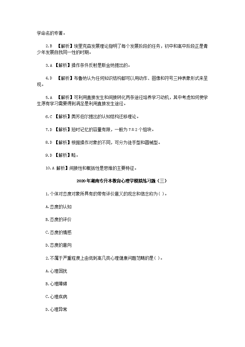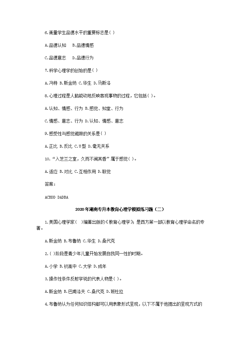 【文档名称】 2020年湖南专升本教育心理学模拟练习题三套(Word版).doc