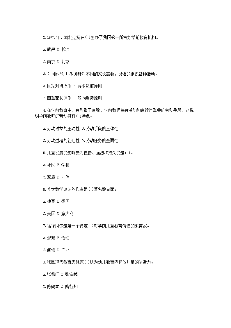 【文档预览】 无忧考网整理发布2020年湖南专升本教育心理学模拟题三套(Word版),前五页预览如下: