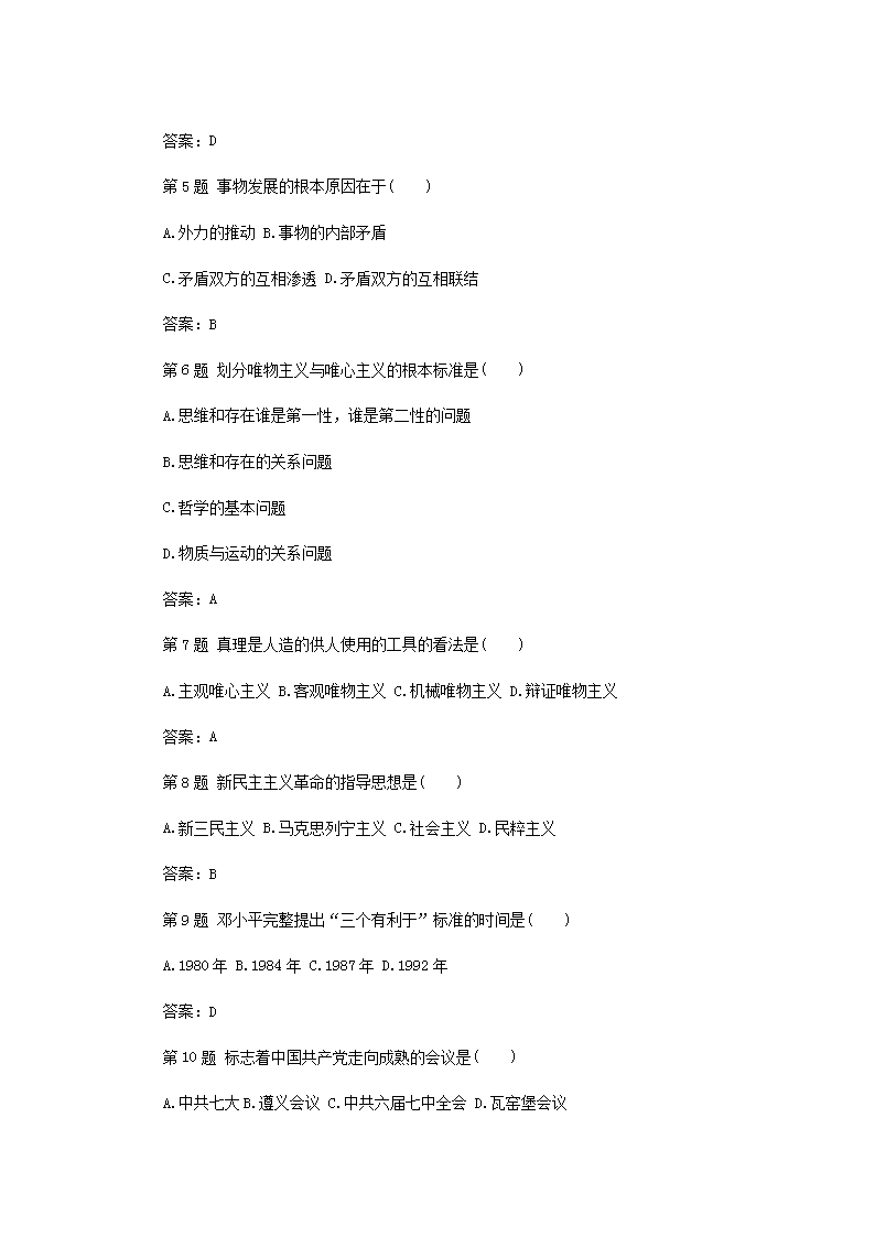 【文档名称】 2020年云南专升本政治练习题三套(Word版).doc