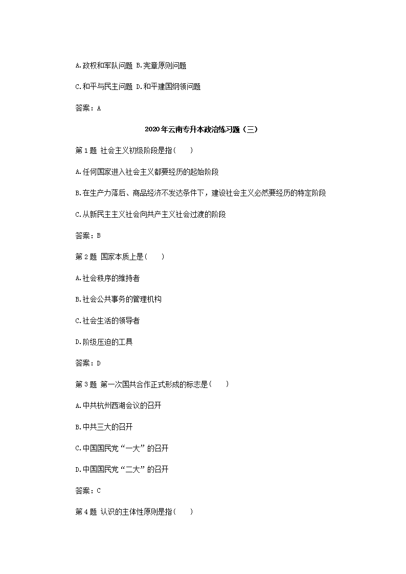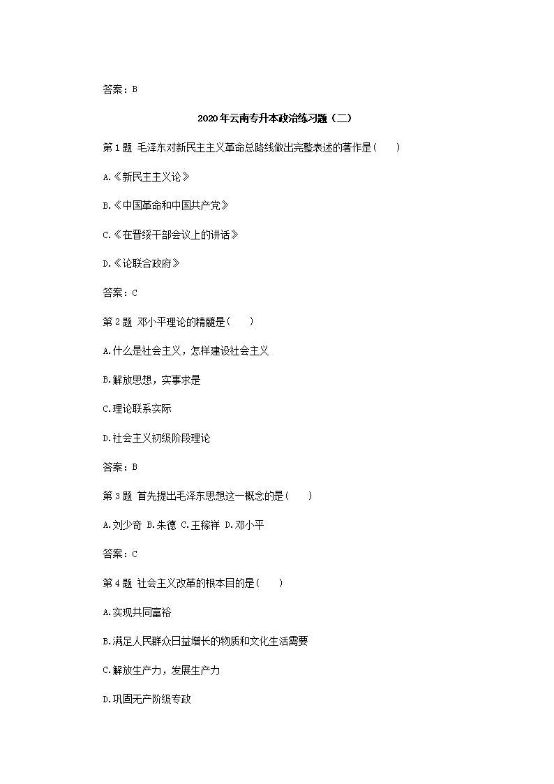 【文档预览】 无忧考网整理发布2020年云南专升本政治练习题三套(Word版),前五页预览如下: