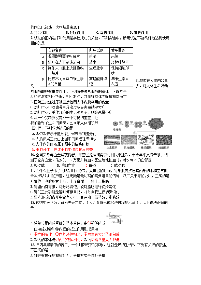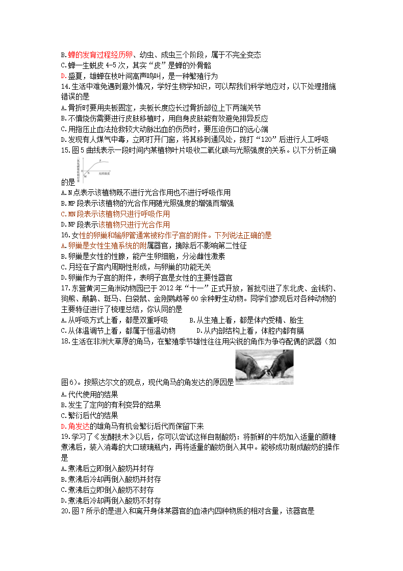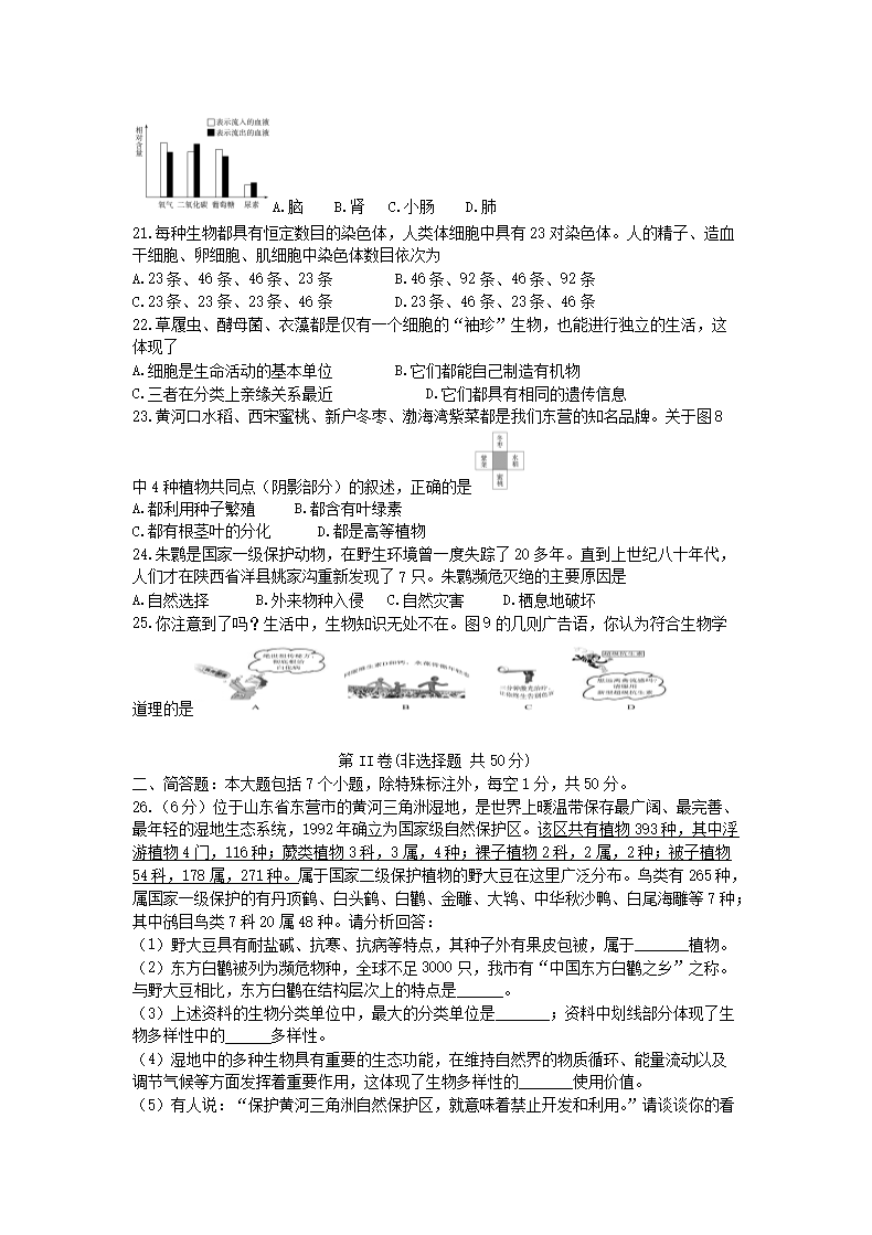 【文档名称】 2013山东省东营市中考生物真题及答案(Word版).doc
