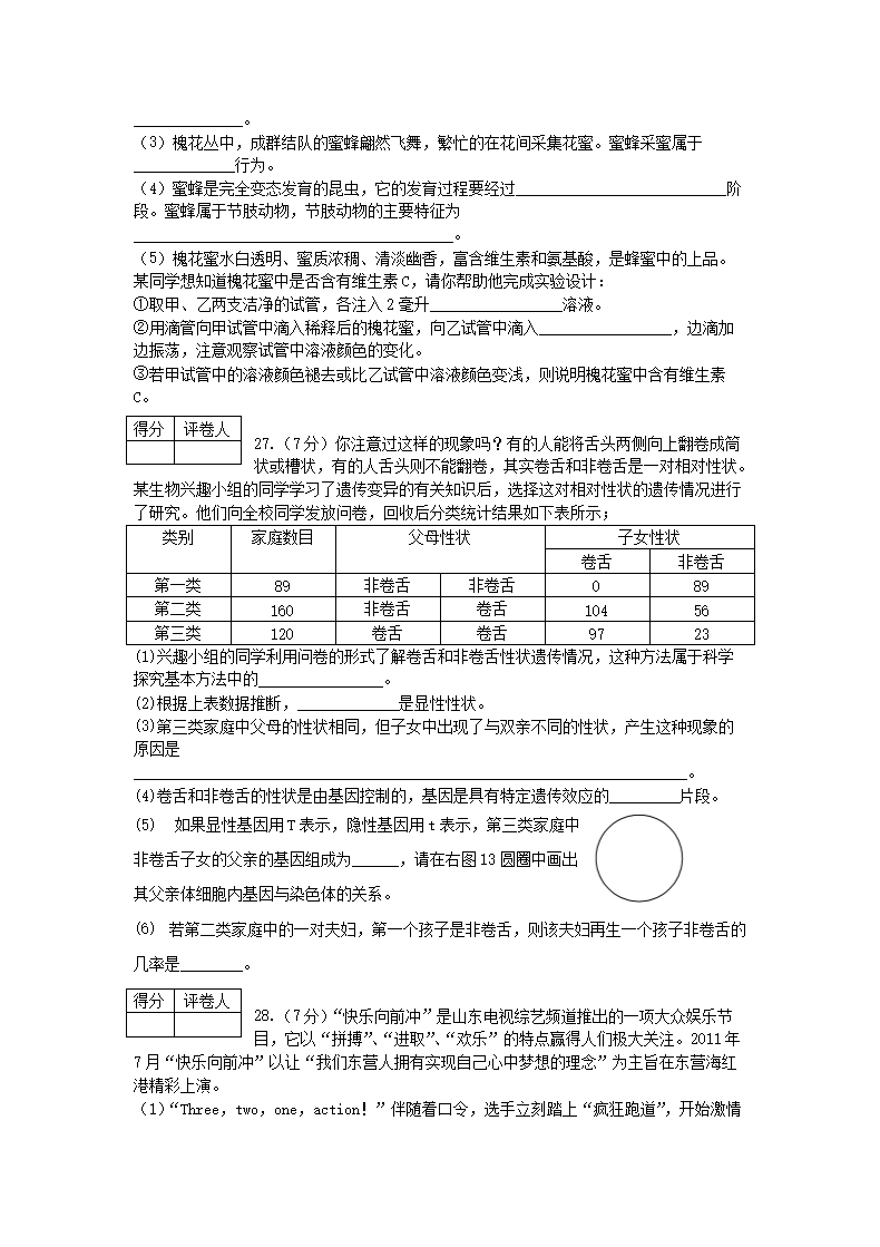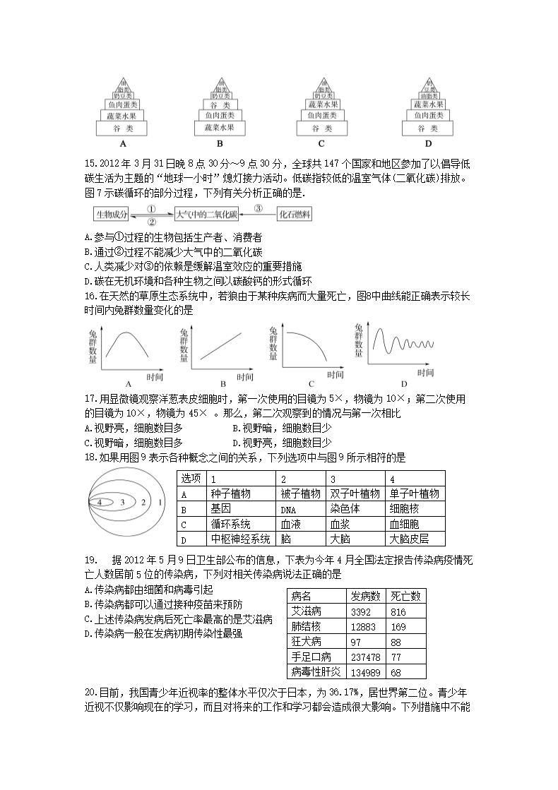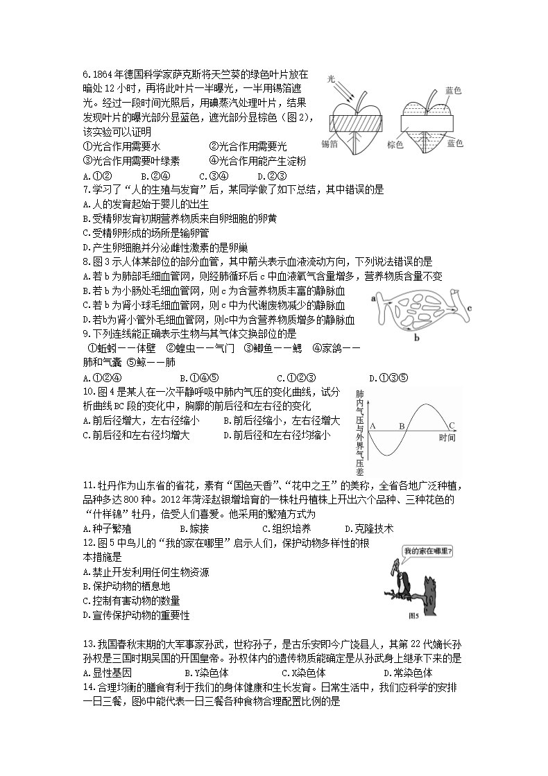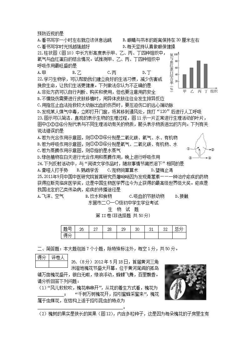 【文档名称】 2012山东省东营市中考生物真题及答案(Word版).doc