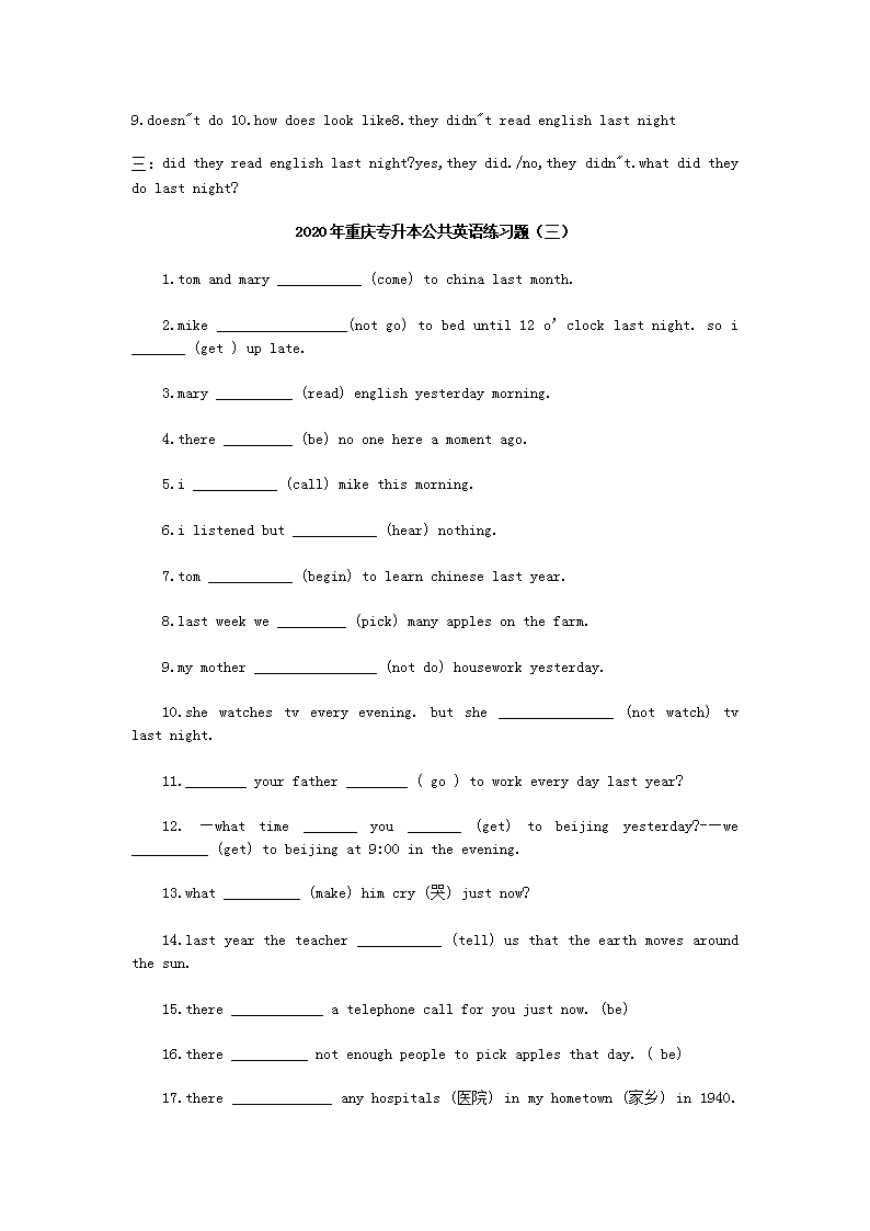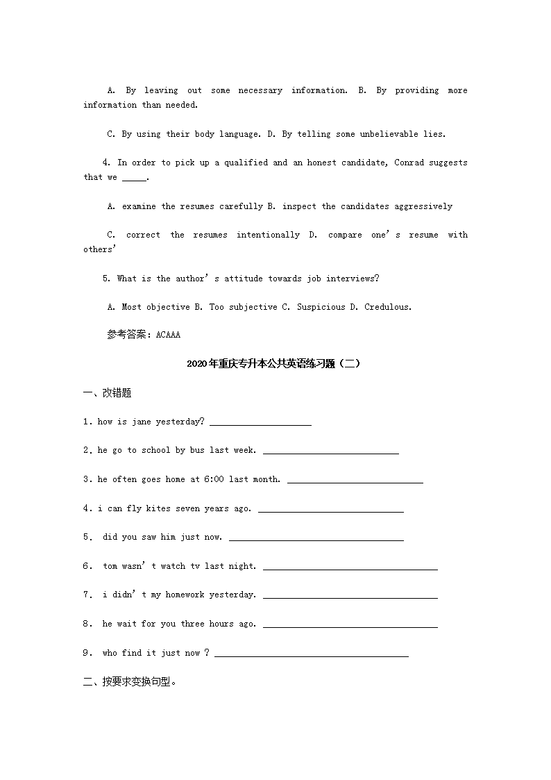 【文档名称】 2020年重庆专升本公共英语练习题三套(Word版).doc