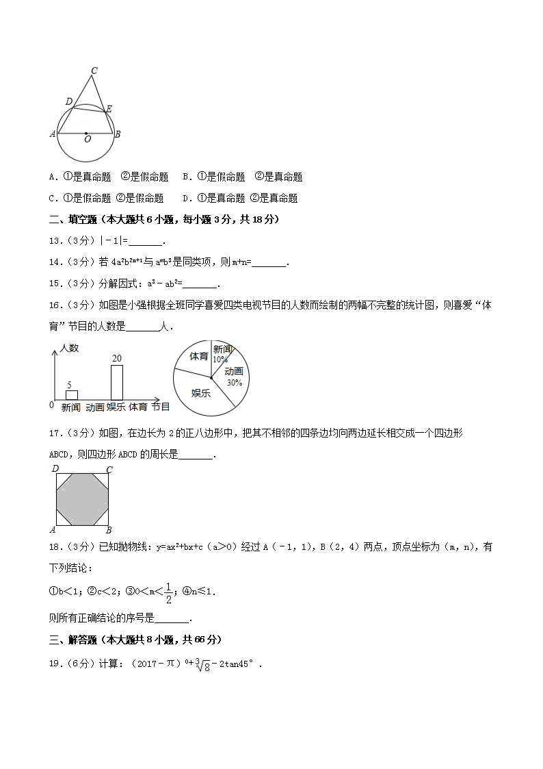 【文档名称】 2017年广西玉林市崇左市中考数学真题及答案(Word版).doc