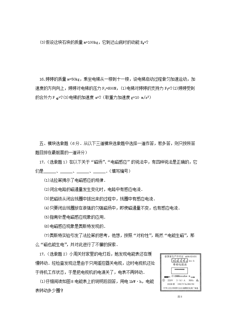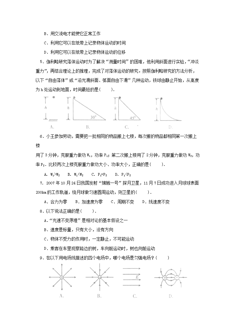 【文档名称】 2008年海南普通高中会考物理考试真题(Word版).doc