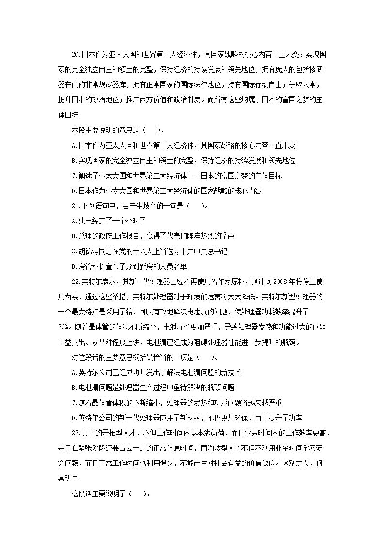 【文档预览】 无忧考网整理发布2010年中国工商银行分行招聘考试行政能力测试真题及答案解析(Word版),前五页预览如下: