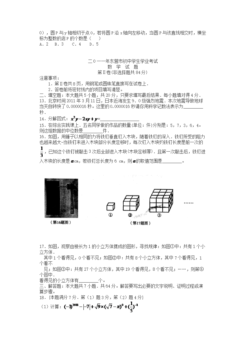 【文档名称】 2011山东省东营市中考数学真题及答案(Word版).doc