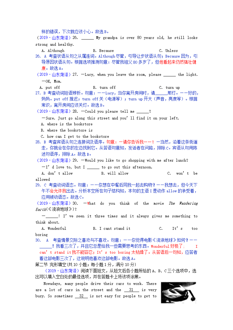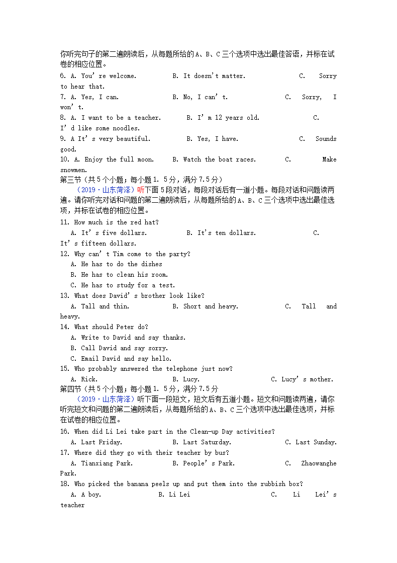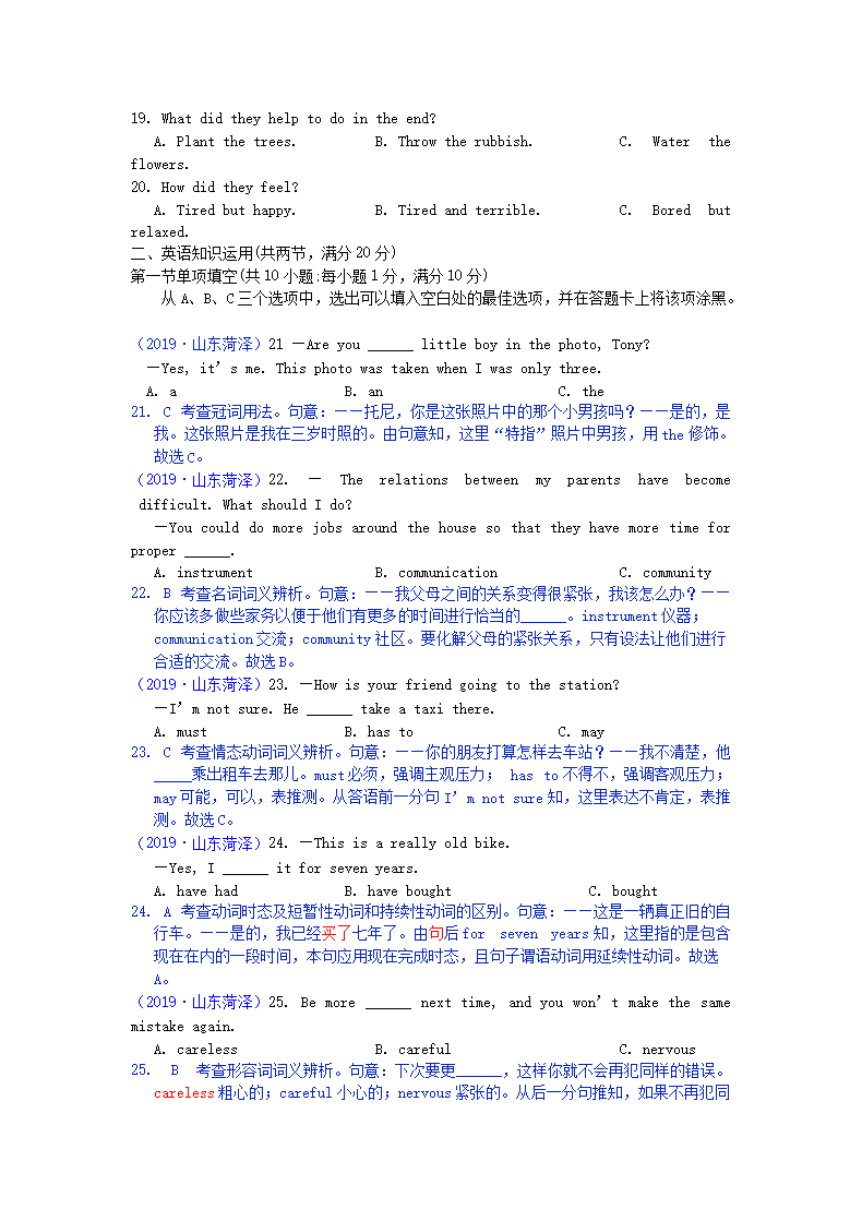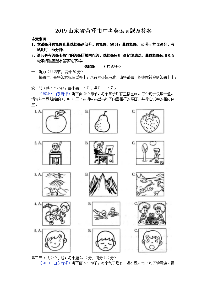 【文档名称】 2019山东省菏泽市中考英语真题及答案(Word版).doc
