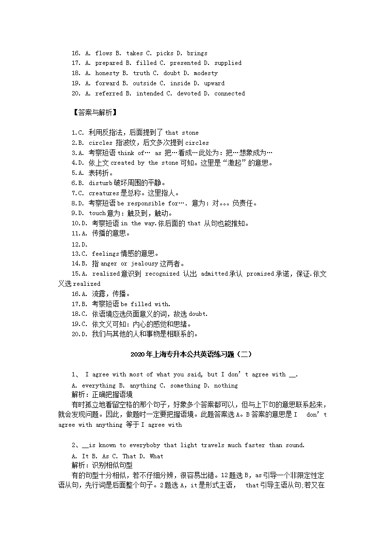 【文档预览】 无忧考网整理发布2020年上海专升本公共英语练习题三套(Word版),前五页预览如下: