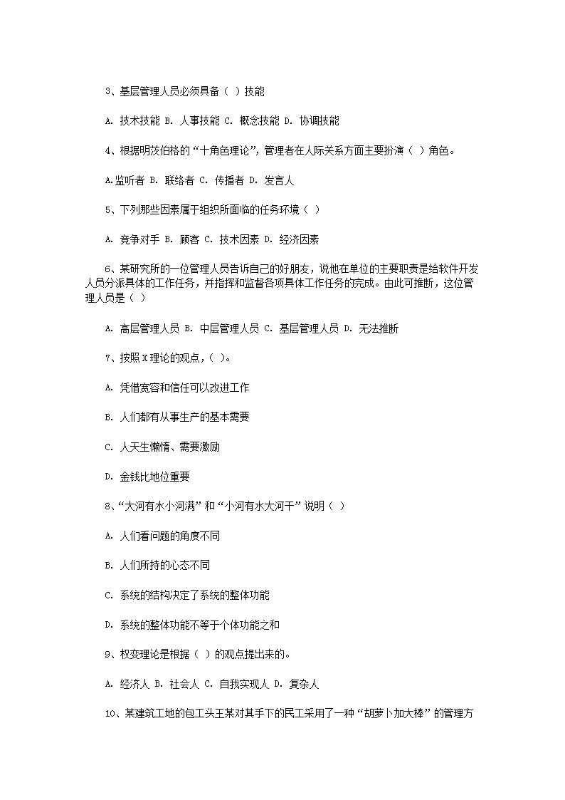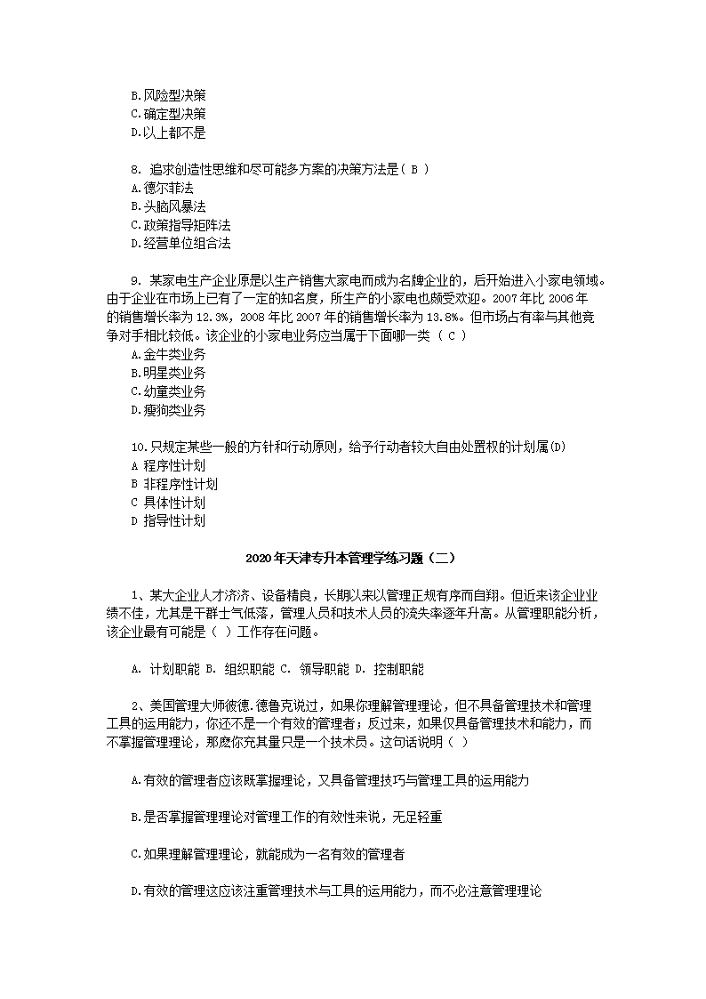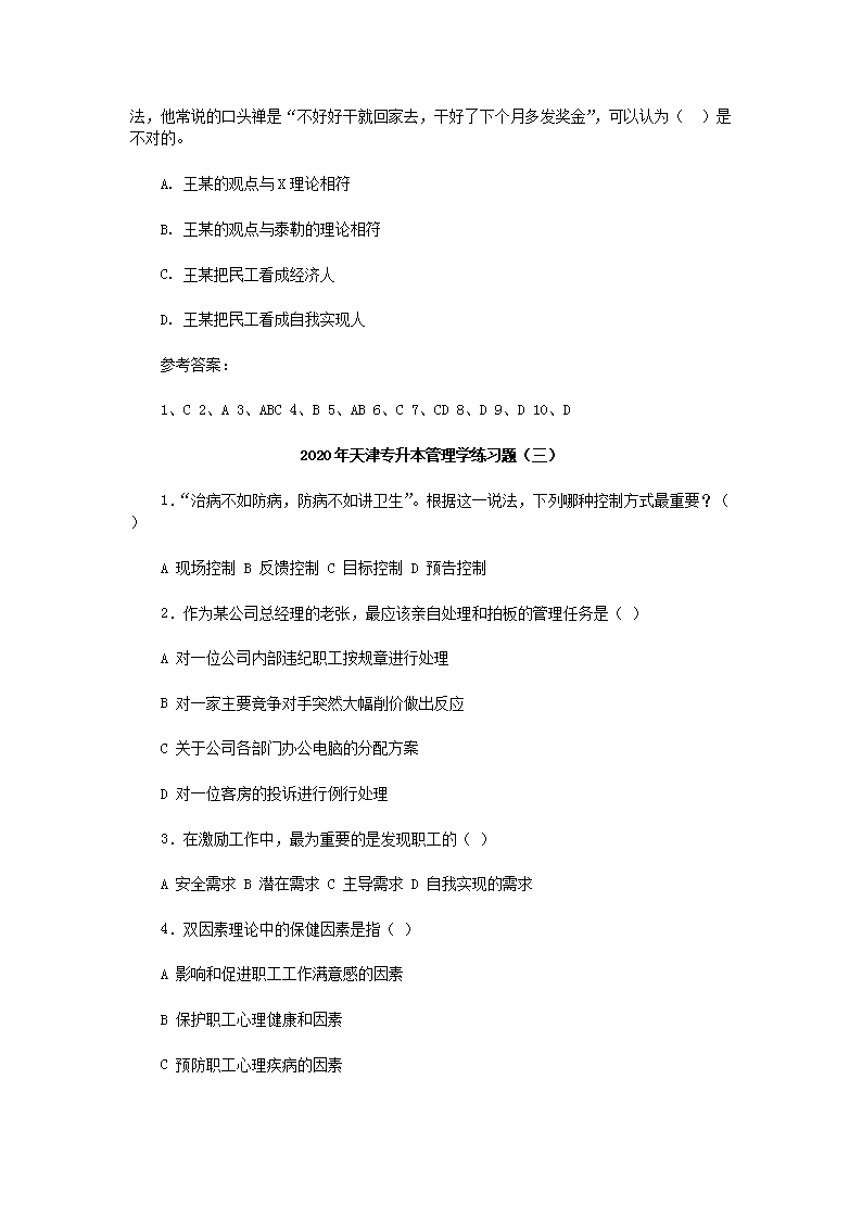 【文档名称】 2020年天津专升本管理学练习题三套(Word版).doc