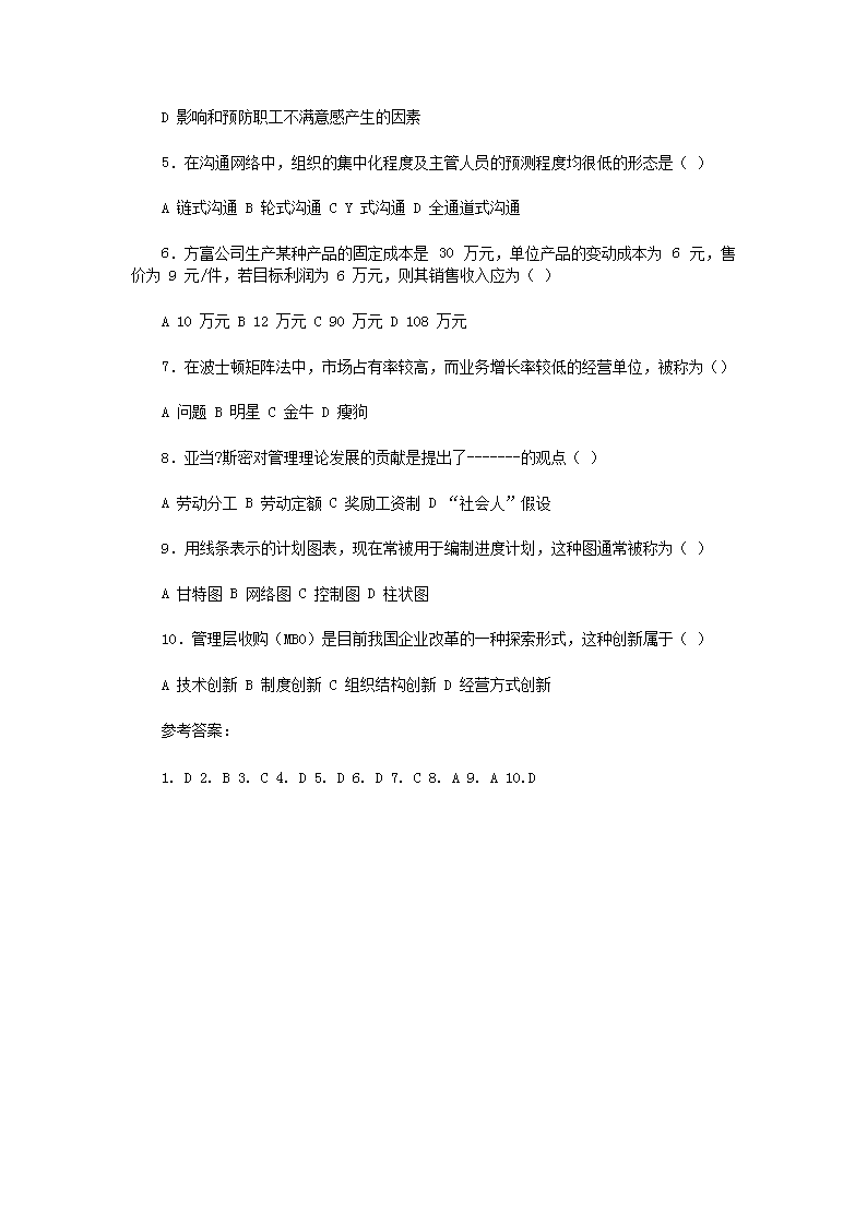 【文档预览】 无忧考网整理发布2020年天津专升本管理学练习题三套(Word版),前五页预览如下: