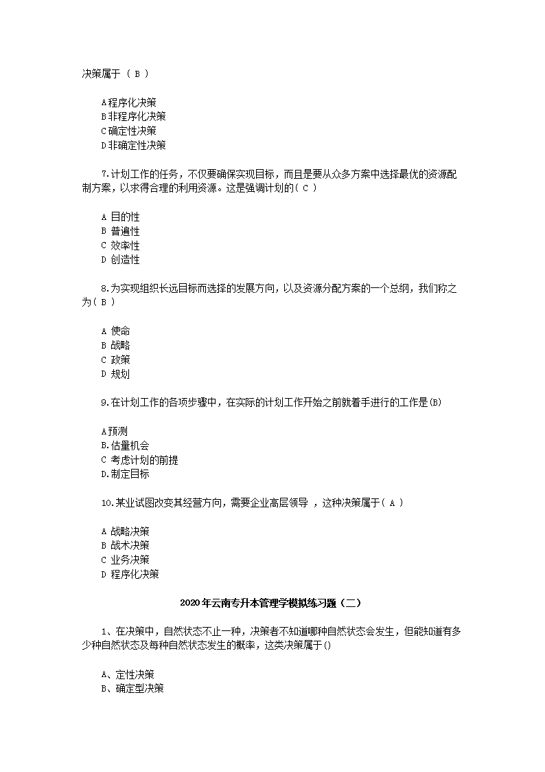 【文档预览】 无忧考网整理发布2020年云南专升本管理学模拟练习题三套(Word版),前五页预览如下: