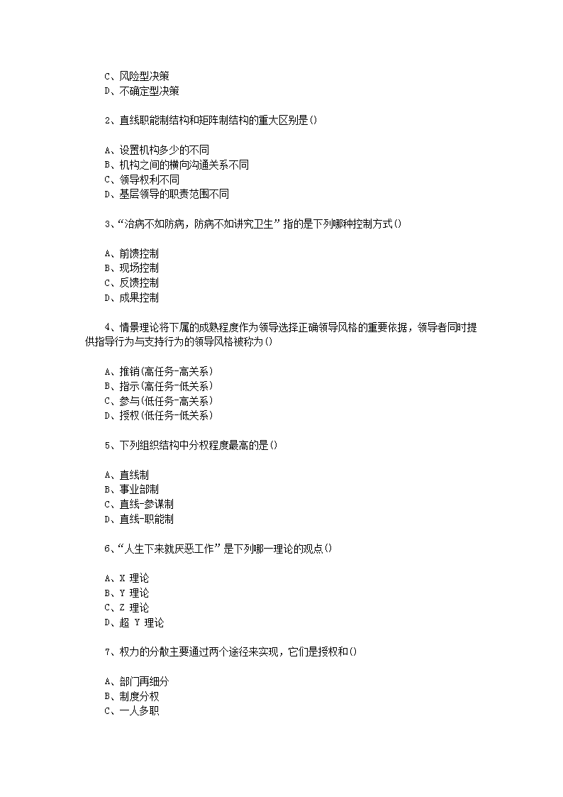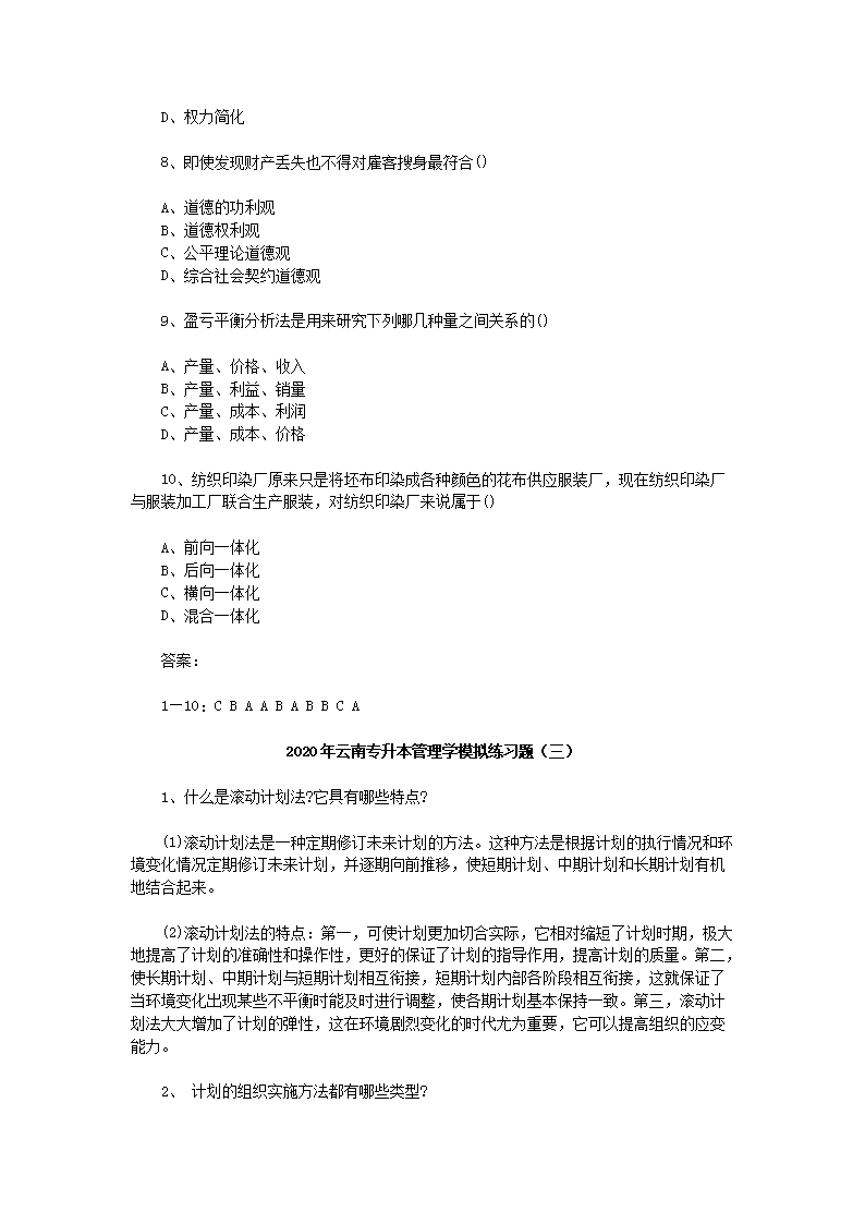 【文档名称】 2020年云南专升本管理学模拟练习题三套(Word版).doc