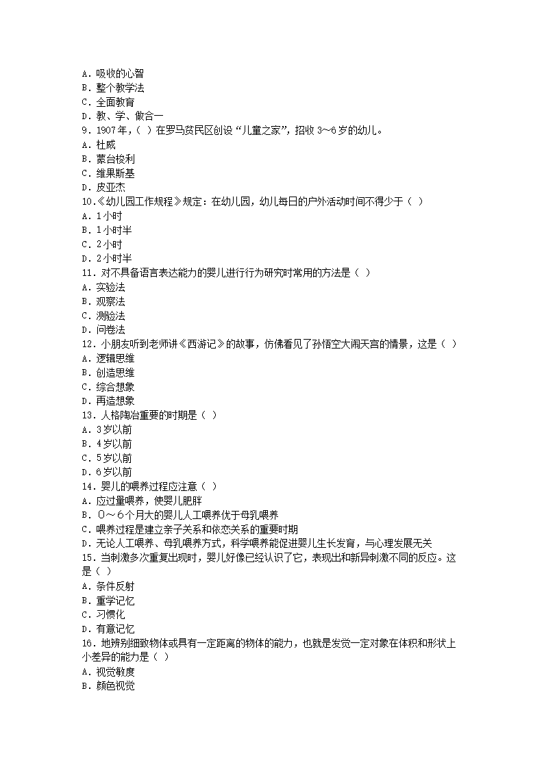 【文档名称】 2021浙江幼儿教师招聘考试模拟练习题及答案三套(Word版).doc