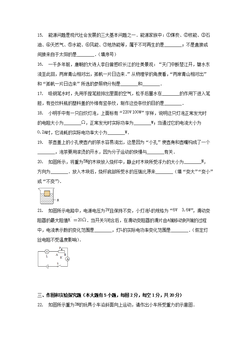 【文档名称】 2019年甘肃省庆阳市中考物理真题及答案(Word版).doc