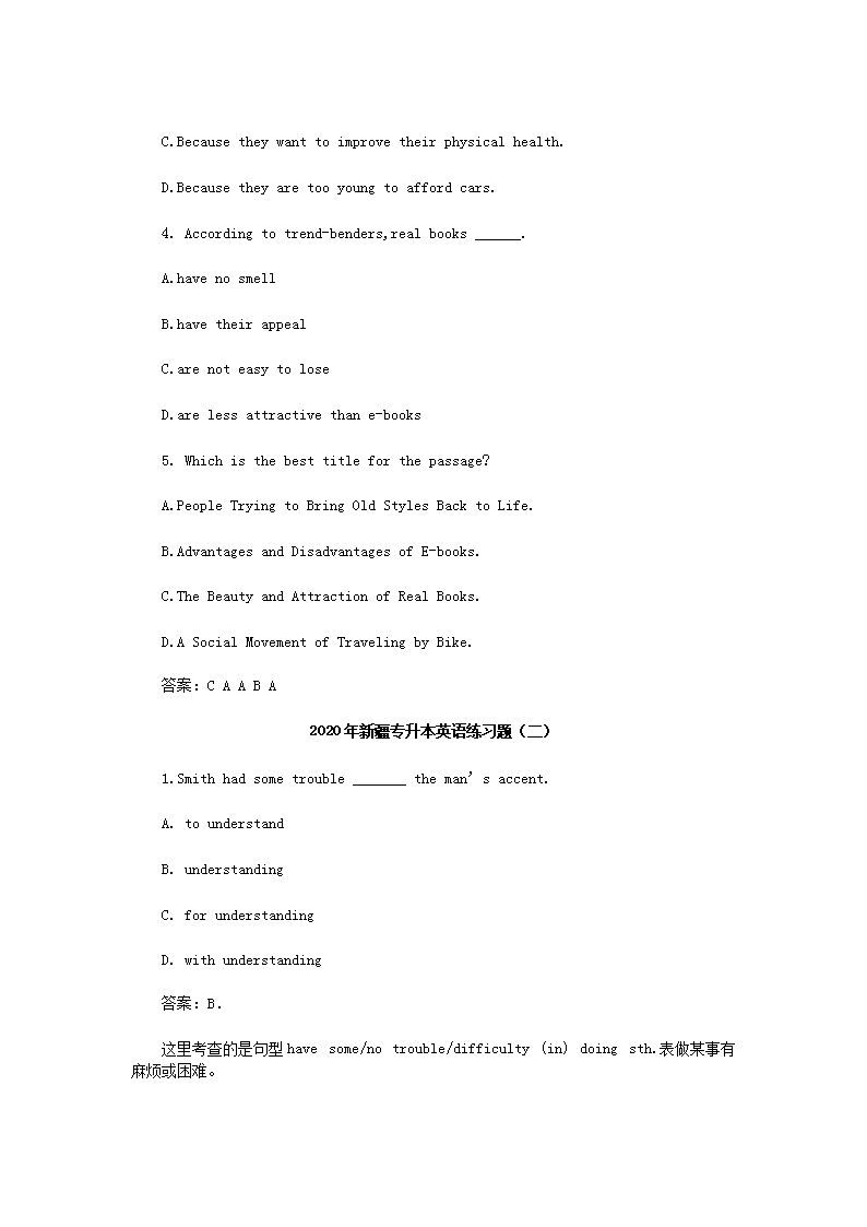 【文档名称】 2020年新疆专升本英语练习题三套(Word版).doc