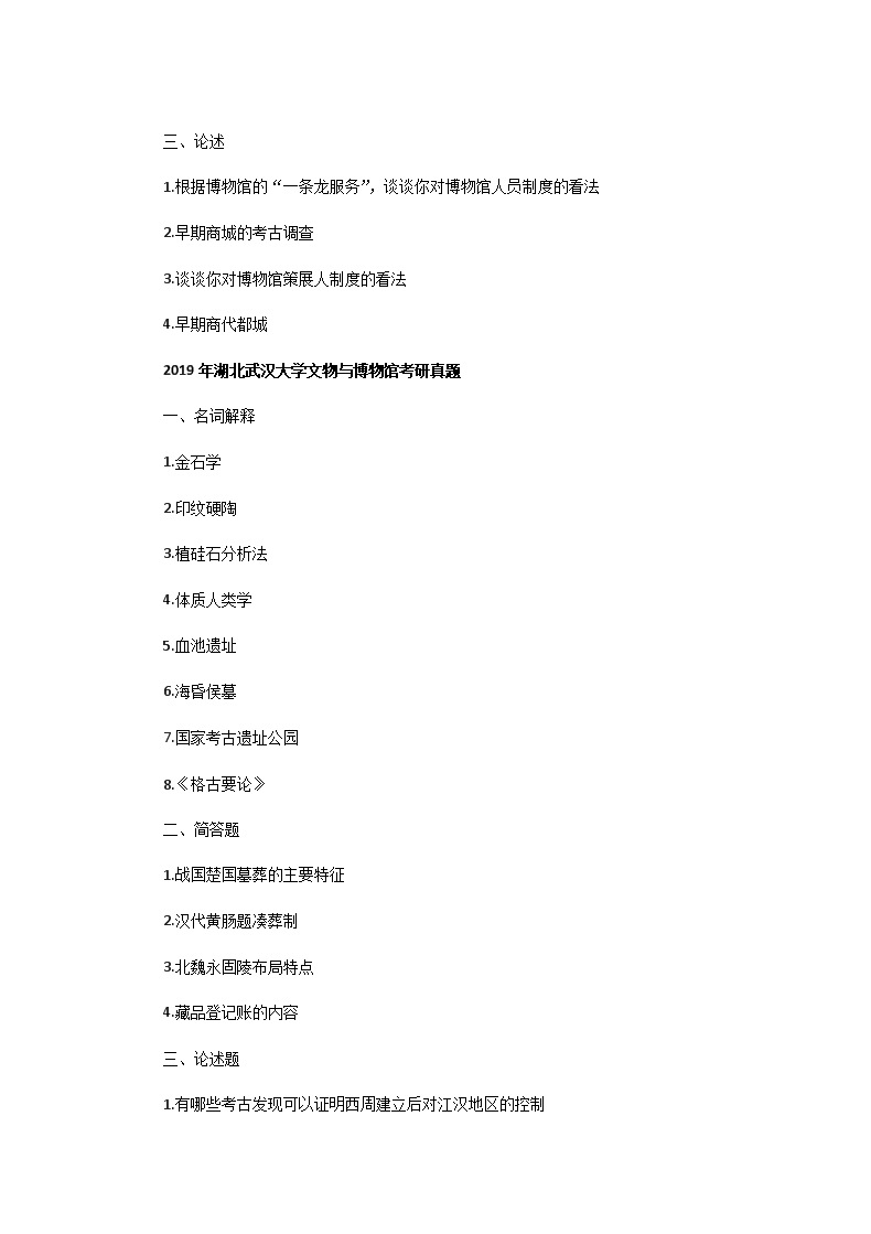 【文档名称】 2016一2019年湖北武汉大学文物与博物馆考研真题(Word版).doc