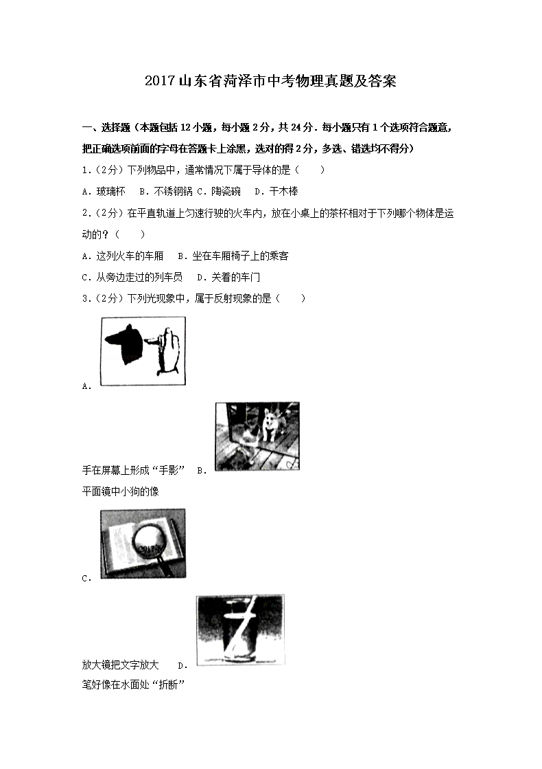 【文档名称】 2017山东省菏泽市中考物理真题及答案(Word版).doc