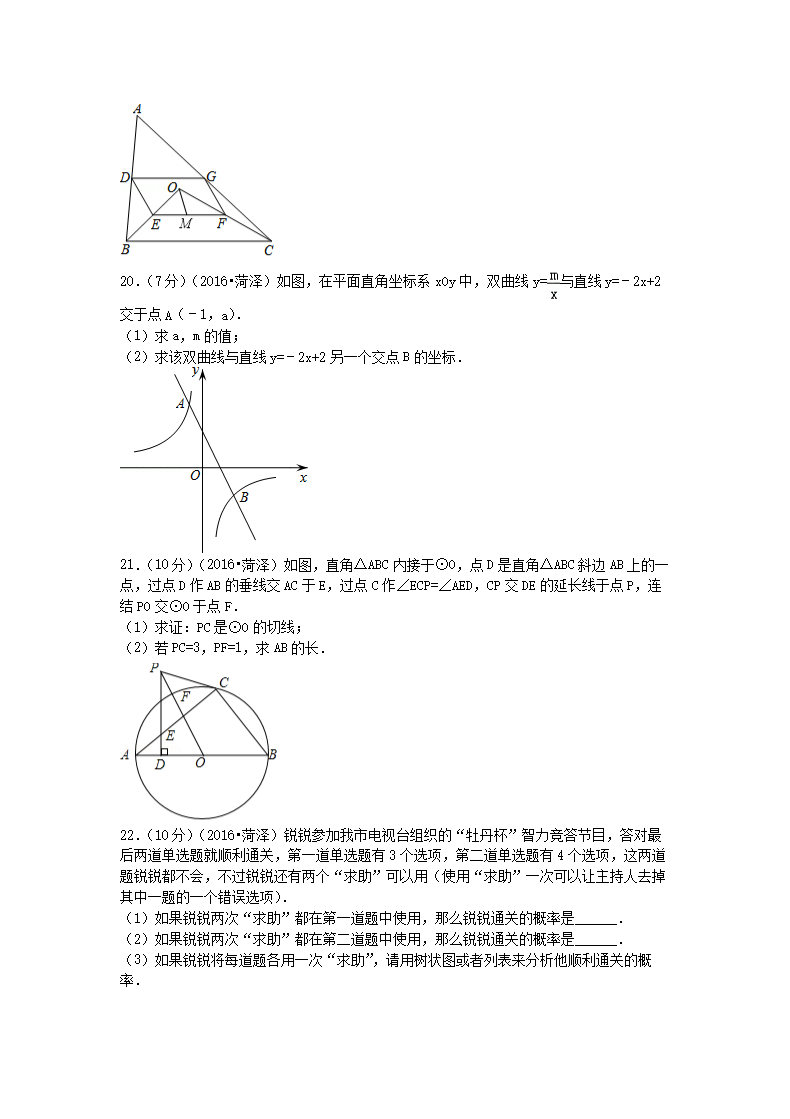 【文档预览】 无忧考网整理发布2016山东省菏泽市中考数学真题及答案(Word版),前五页预览如下: