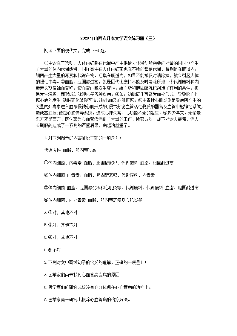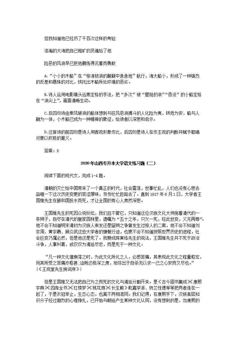 【文档名称】 2020年山西专升本大学语文练习题三套(Word版).doc
