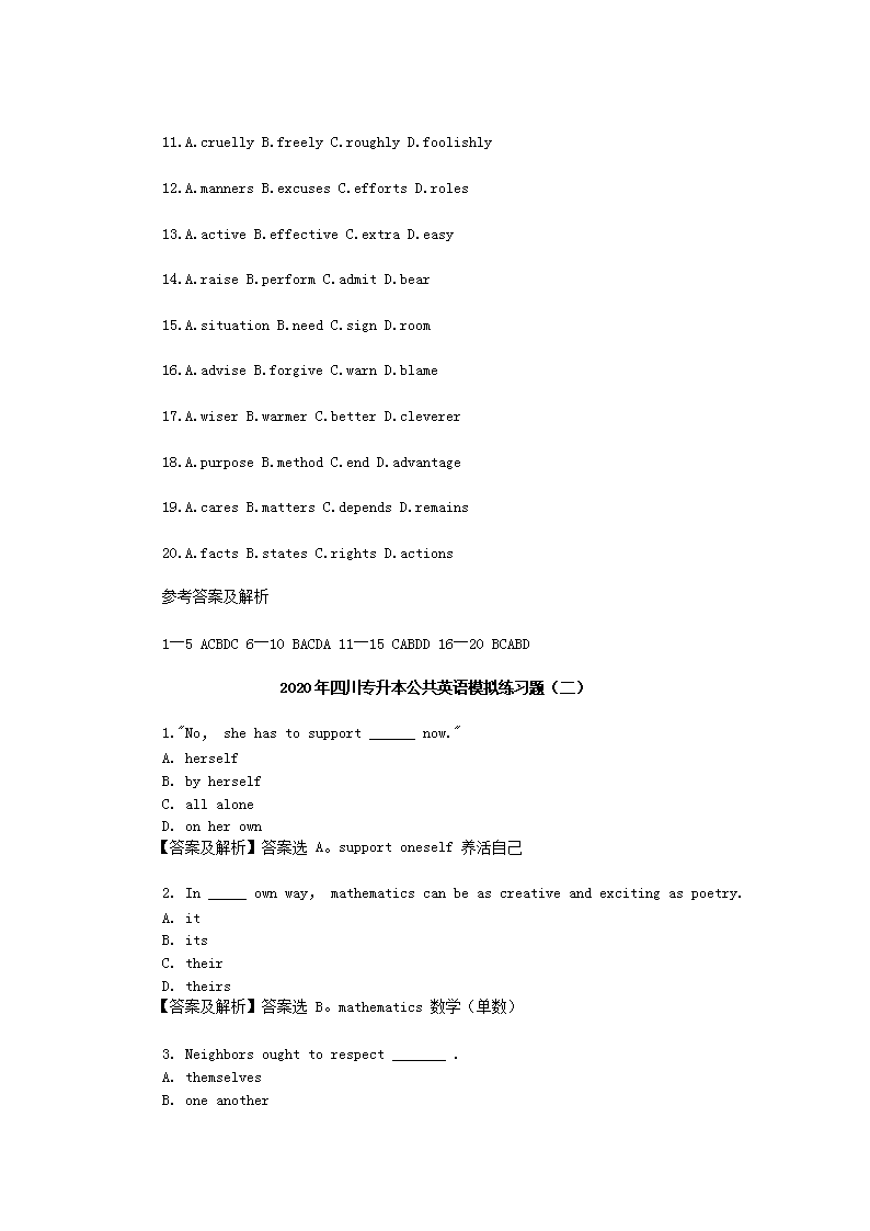 【文档预览】 无忧考网整理发布2020年四川专升本公共英语模拟练习题三套(Word版),前五页预览如下:
