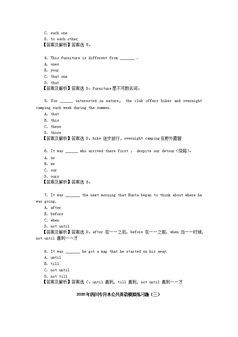 【文档名称】 2020年四川专升本公共英语模拟练习题三套(Word版).doc