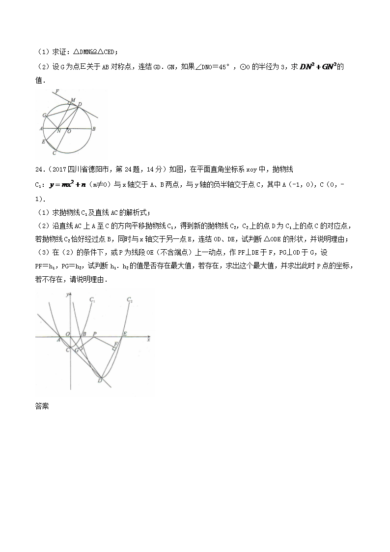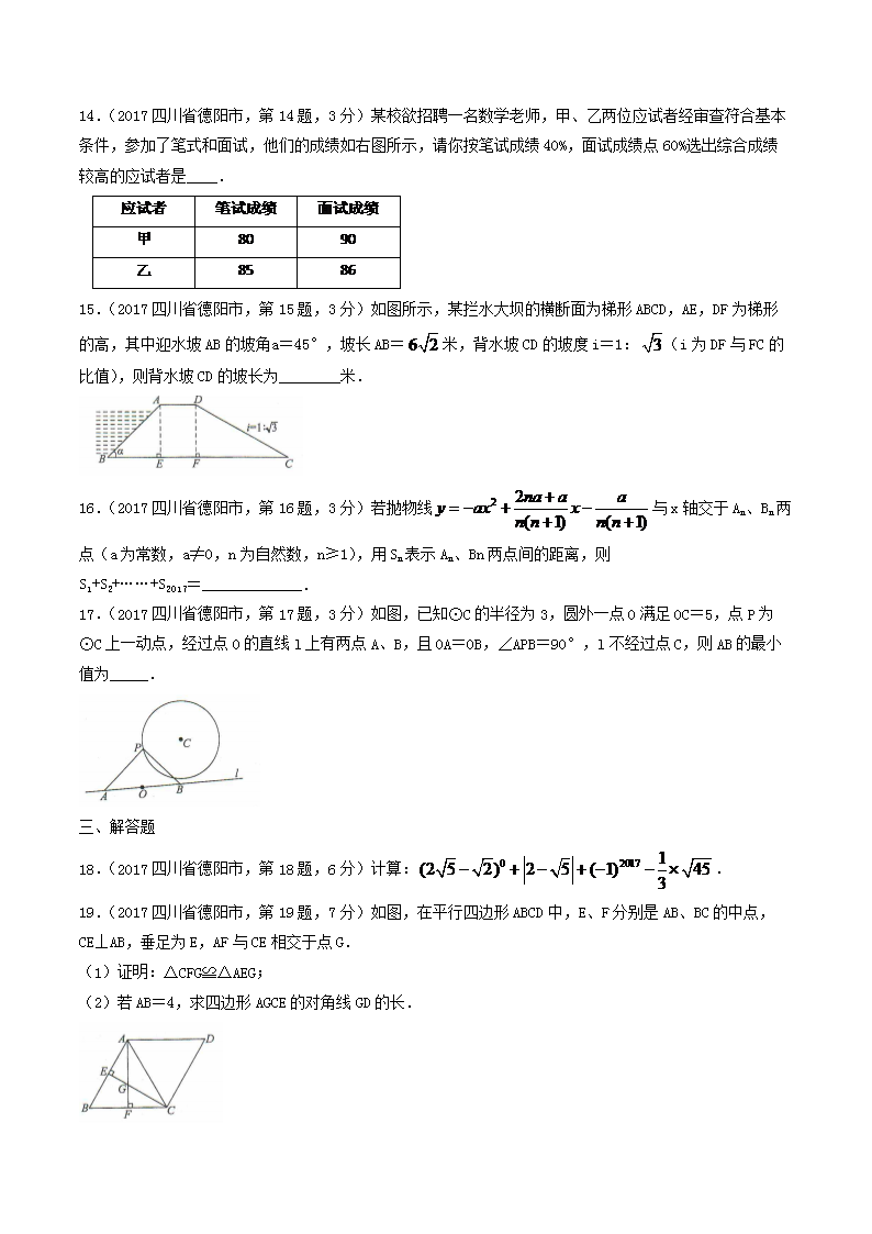 【文档预览】 无忧考网整理发布2017年四川省德阳市中考数学真题及答案(Word版),前五页预览如下:
