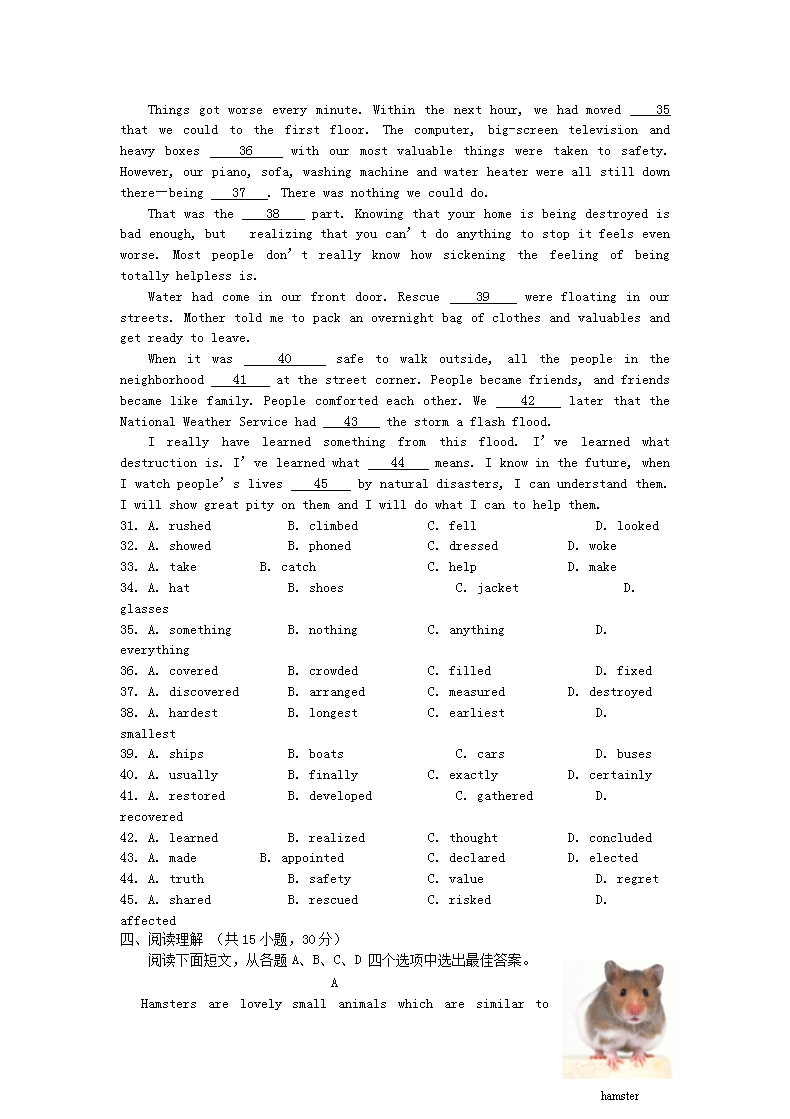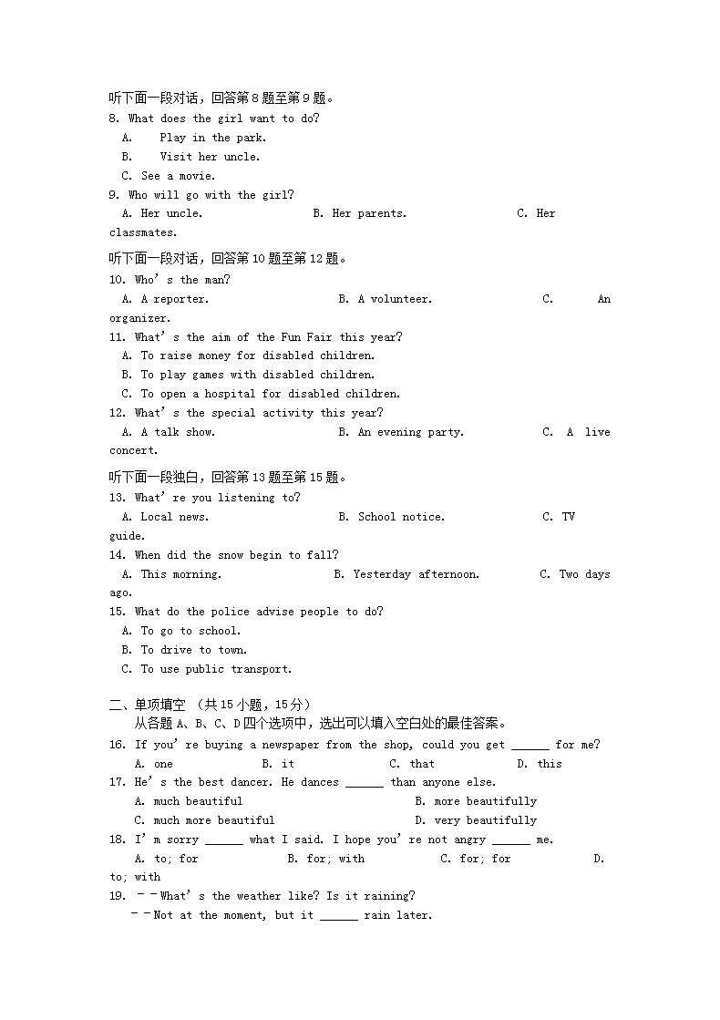 【文档预览】 无忧考网整理发布2009年北京普通高中会考英语真题及答案(Word版),前五页预览如下: