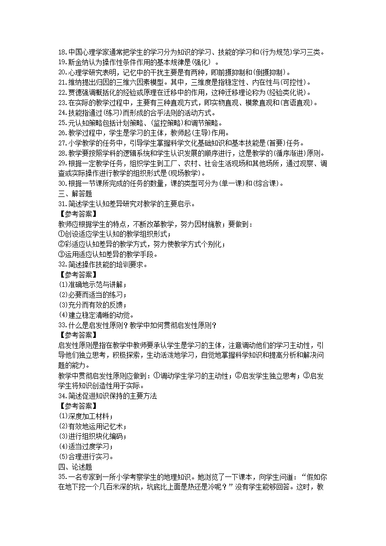 【文档名称】 2021山西教师招聘考试教育心理学模拟试题及答案三套(Word版).doc