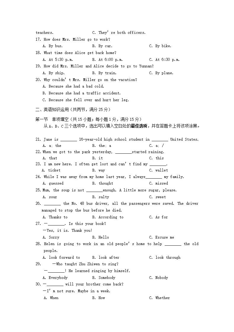 【文档预览】 无忧考网整理发布2015山东省菏泽市中考英语真题及答案(Word版),前五页预览如下: