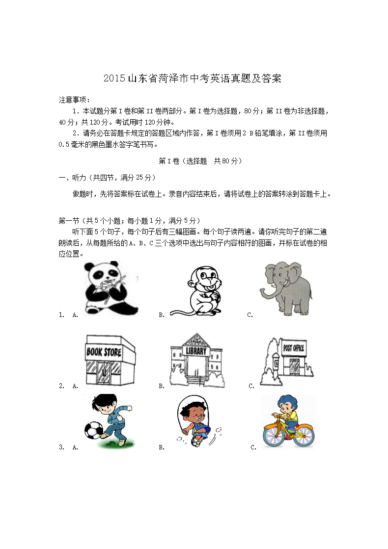 【文档名称】 2015山东省菏泽市中考英语真题及答案(Word版).doc