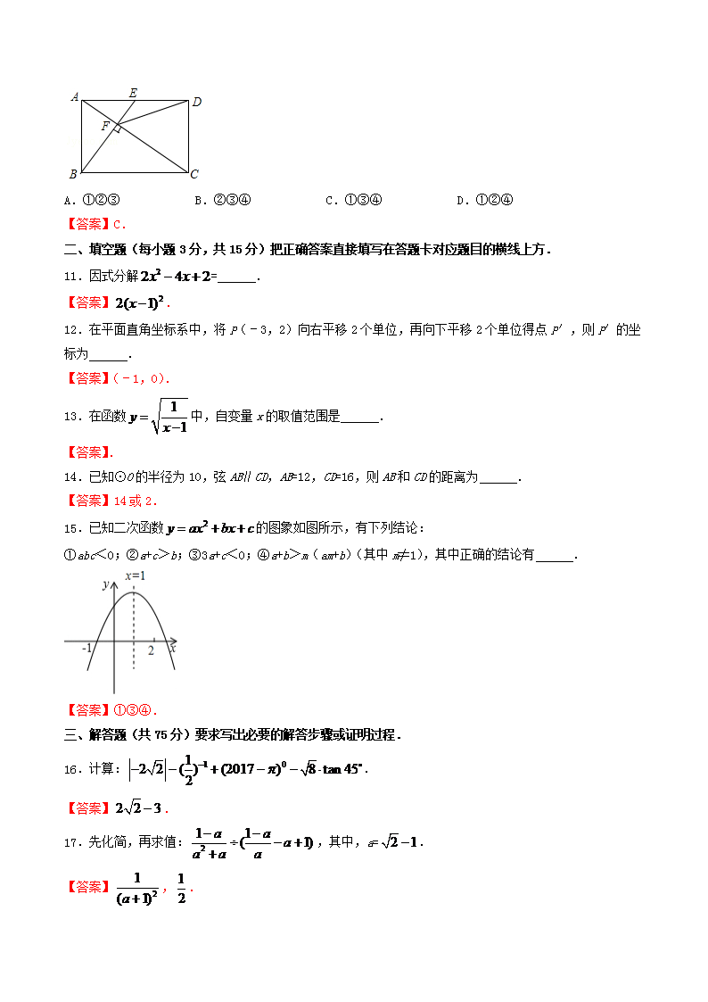【文档名称】 2017年四川省广元市中考数学真题及答案(Word版).doc