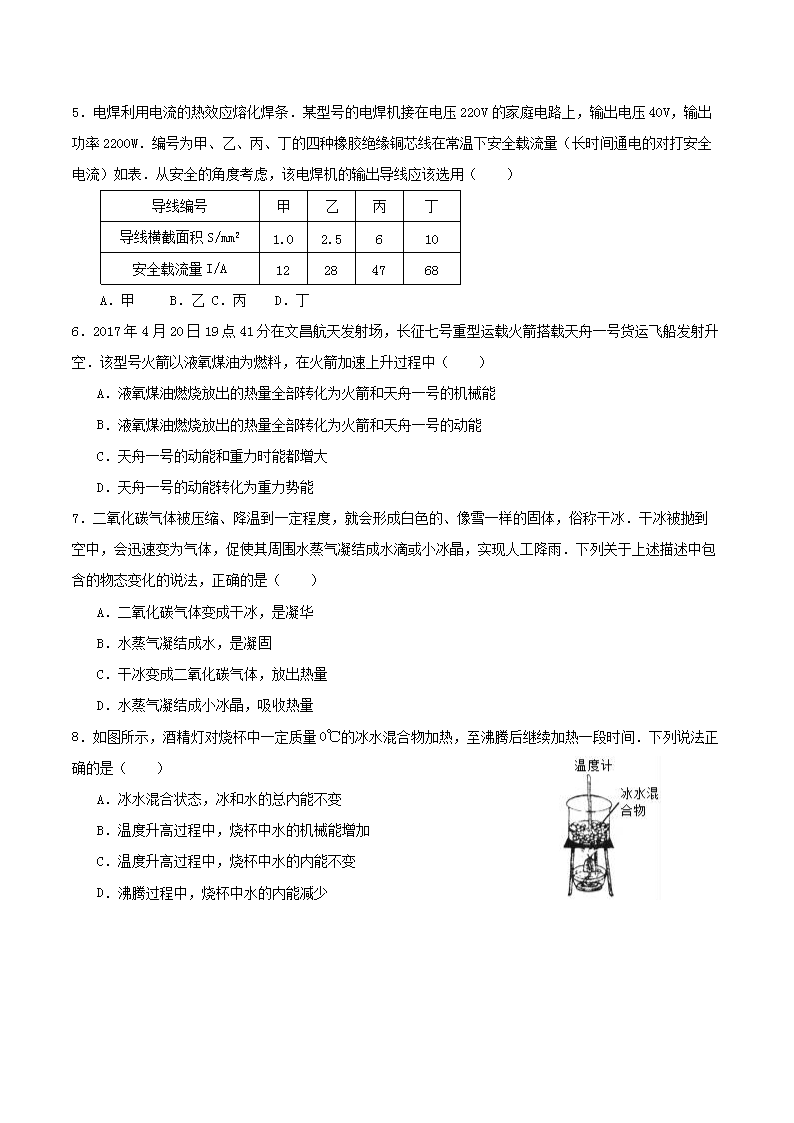 【文档名称】 2017年四川省绵阳市中考物理真题及答案(Word版).doc
