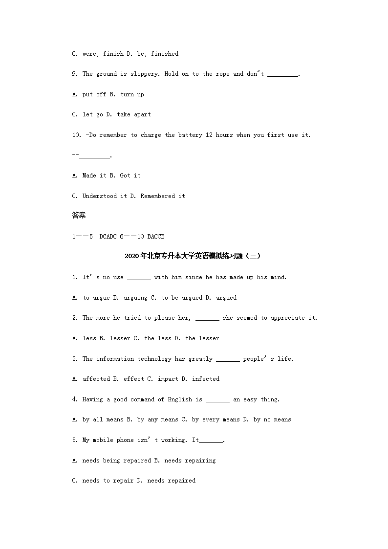 【文档名称】 2020年北京专升本大学英语模拟练习题三套(Word版).doc