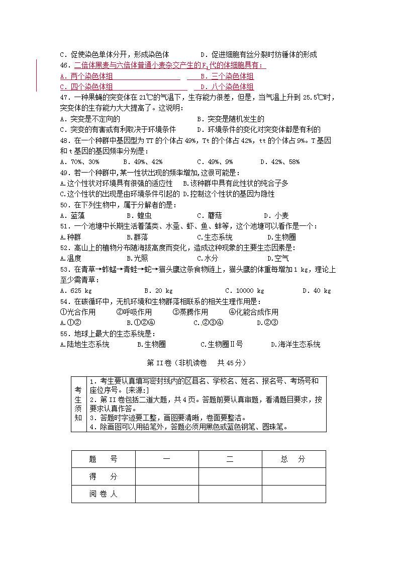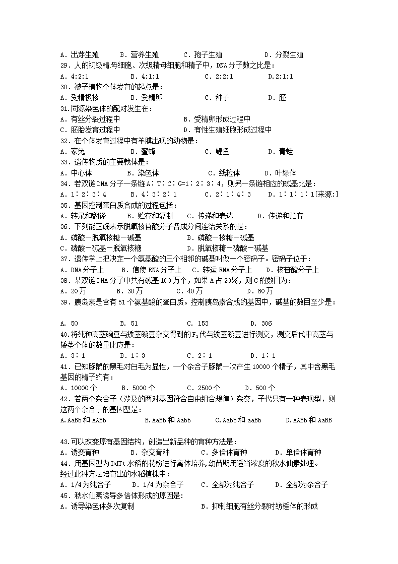 【文档预览】 无忧考网整理发布2004年北京普通高中会考生物真题及答案(Word版),前五页预览如下: