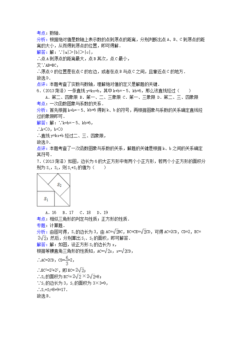 【文档预览】 无忧考网整理发布2013山东省菏泽市中考数学真题及答案(Word版),前五页预览如下: