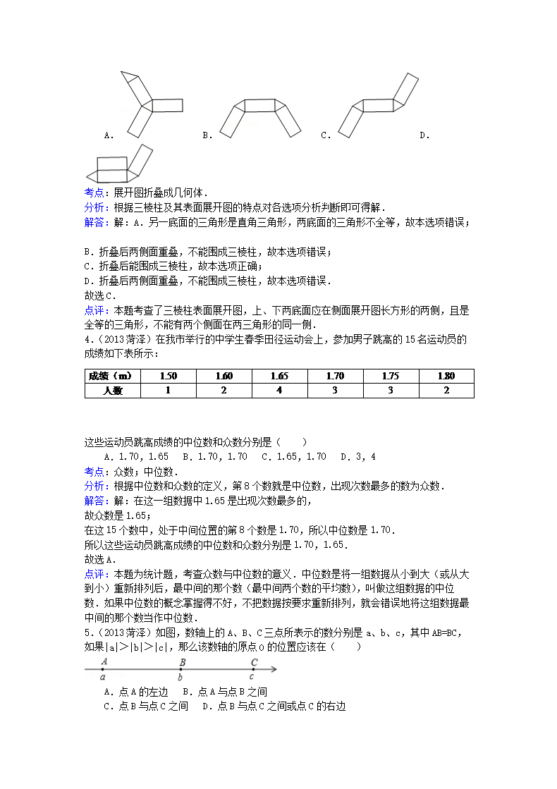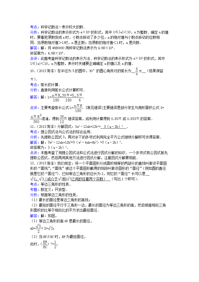 【文档名称】 2013山东省菏泽市中考数学真题及答案(Word版).doc