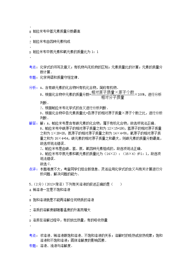 【文档预览】 无忧考网整理发布2013山东省菏泽市中考化学真题及答案(Word版),前五页预览如下: