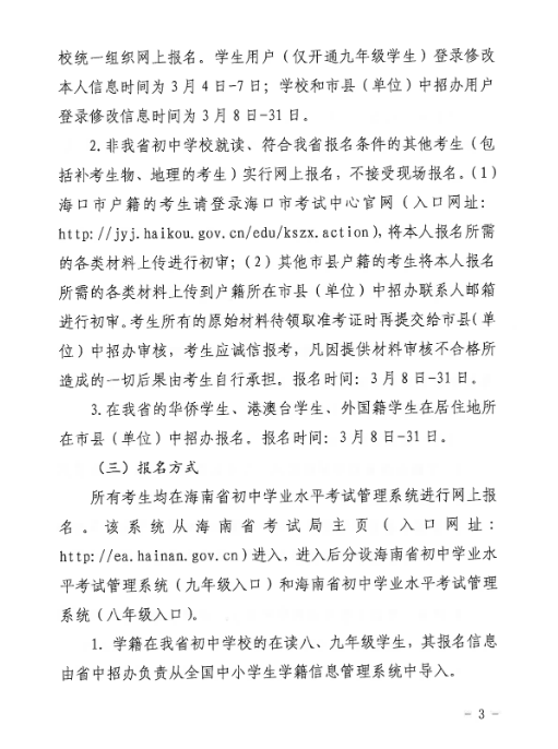 海南省考试局:2026年海南初中学业水平考试报名工作的通知
